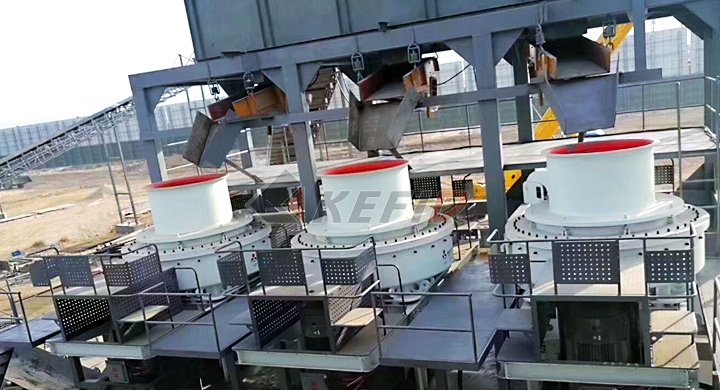The river pebble is sentting into the jaw crusher by the vibrating feeder for coarse crushing, and then enters the cone crusher for fine crushing. Then the crushed material is classified by the sand making machine and the vibrating screen to obtain the final product.